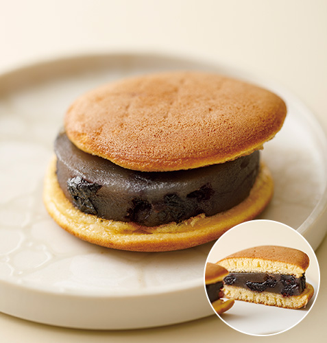 味の濃さが特徴の「能登ブルーベリー」を、ふたば謹製の自家製餡で羊羹にしてどら焼きで挟みました。どら焼きの香ばしさと相まって満足度の高い一品。
