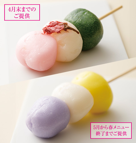 白山市旧鶴来町の稲ほ舎(北辰農産)の米粉を使用した、春の楽しみ、花見だんごです。桜から花菖蒲や藤の花へと、お団子で春の花の移ろいを楽しんでください。