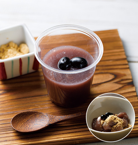 お米と麹だけで作った金沢大地の「とろとろ玄米甘酒」を羊羹にして能登塩を効かせた『塩羊羹』です。上に手亡豆の鹿の子豆を乗せました。甘さと塩加減が良い塩梅の羊羹です。