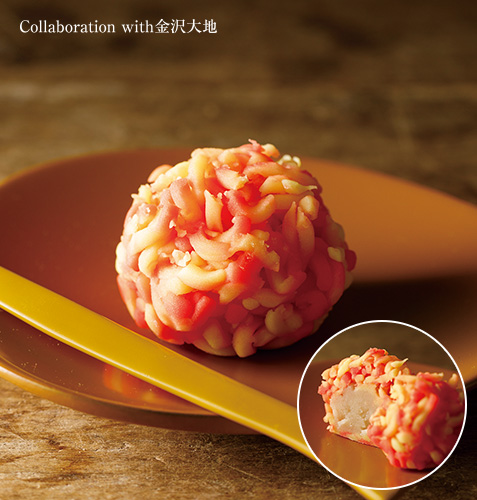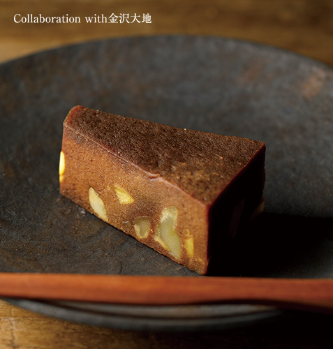 米麹を多く使うため濃厚で米の甘みを感じる金沢大地の「オーガニック米麹味噌」を使用することで、こっくりとした深みのある餡ができました。能登の山々の紅葉、冬を迎える里山を表現しています。