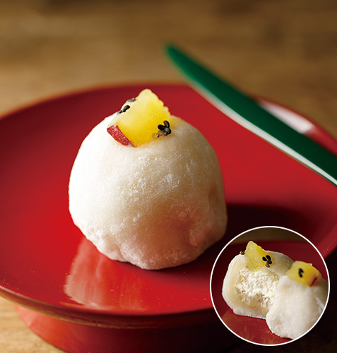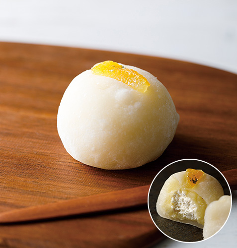 加賀野菜で百万石の極み食材でもある五郎島金時の生クリーム大福。粉質系のさつまいもでクリームとの相性は抜群。おいもの甘さをより引き出している大福です。